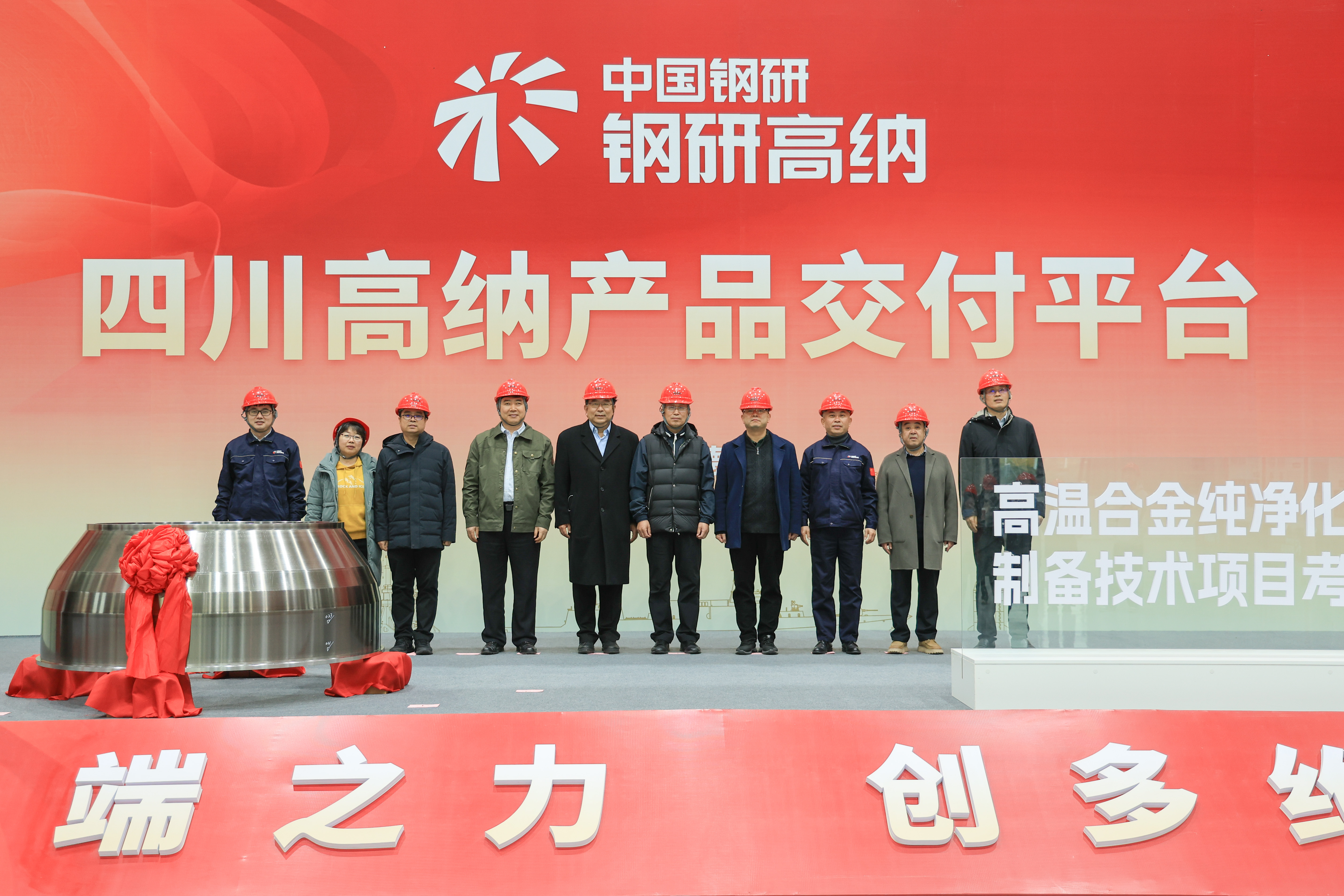 12月6日,鋼研高納在德陽基地舉辦國家“十四五”重點研發(fā)計劃“先進結(jié)構(gòu)與復(fù)合材料”重點專項“高溫合金純凈化與難變形薄壁異形鍛件制備技術(shù)”項目考核部件交付儀式。項目責(zé)任專家、中國航發(fā)北京航空材料研究院一級專職總師張國慶研究員、北京科技大學(xué)技術(shù)研究院院長馮強教授,咨詢專家組成員西北工業(yè)大學(xué)劉東教授、鋼研高納鍛造中心首席科學(xué)家杜金輝教授,項目負責(zé)人、鋼研高納副總經(jīng)理曲敬龍及用戶單位代表等40余位代表出席儀式。